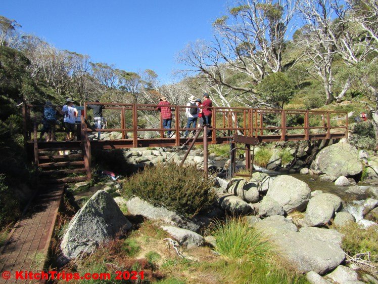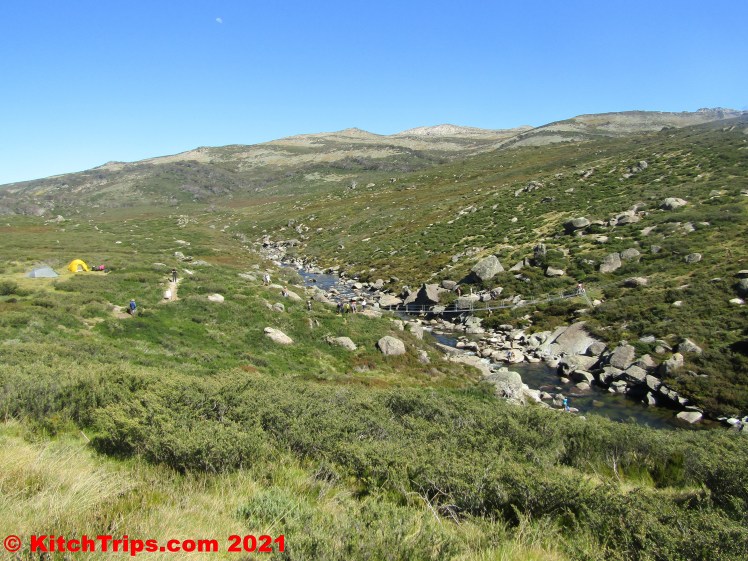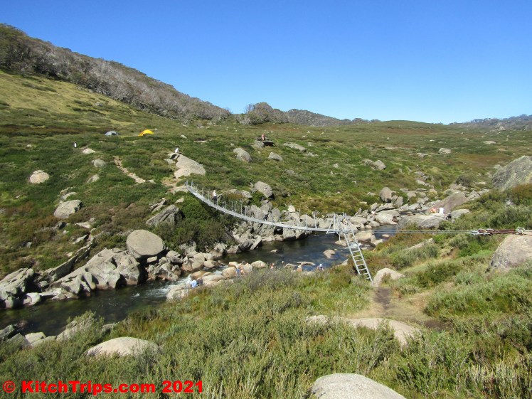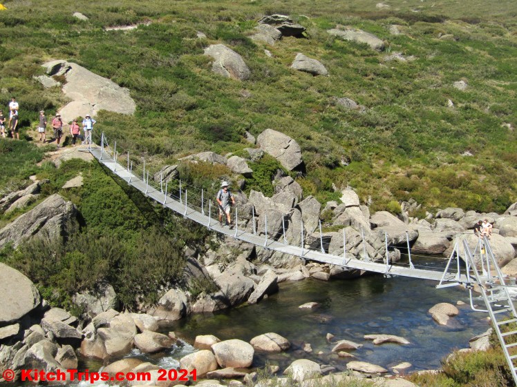 On Easter Saturday, we drove from Island Bend around to Guthega and did a favourite walk of mine that we haven’t been on in the best part of ten years: the undulating trail out to Illawong Hut and the suspension bridge there that crosses the Snowy River. The Main Range views are excellent!