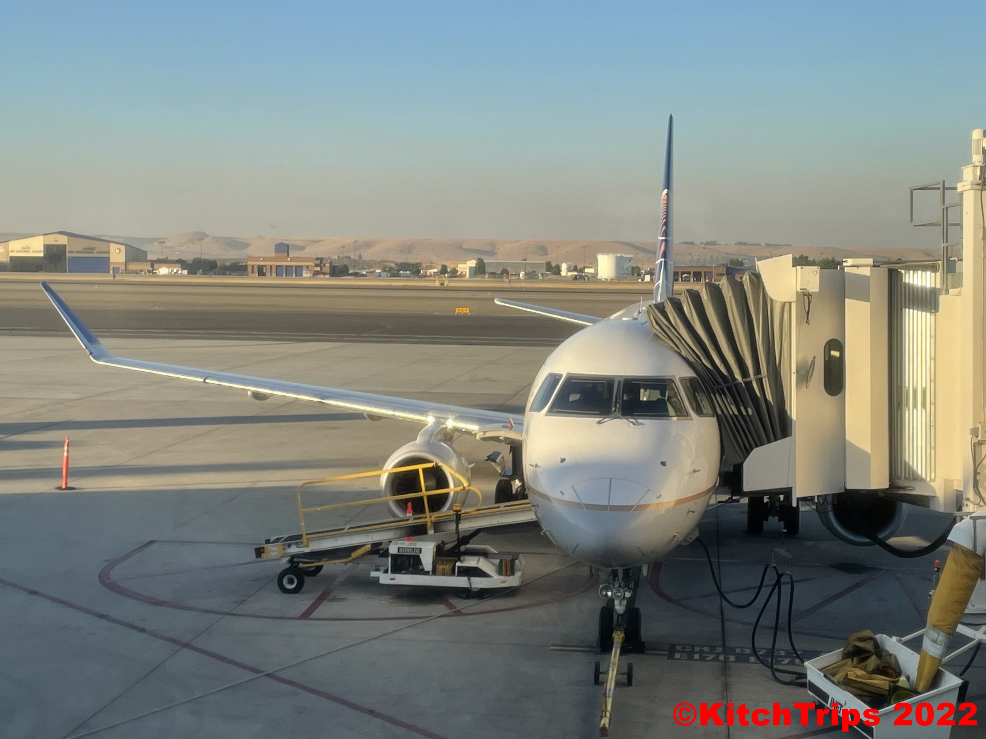 Let me rewind: we had a dream run to the airport (about ten minutes outside of Boise), checked in with no problems, breezed through security and had plenty of time to get some breakfast before we boarded. It was an on-time boarding, the overhead lockers at our seats hadn’t been used by passengers who boarded earlier. We had great seats over the wing. Took off on time. Had a nap, nearly finished the book I was reading.