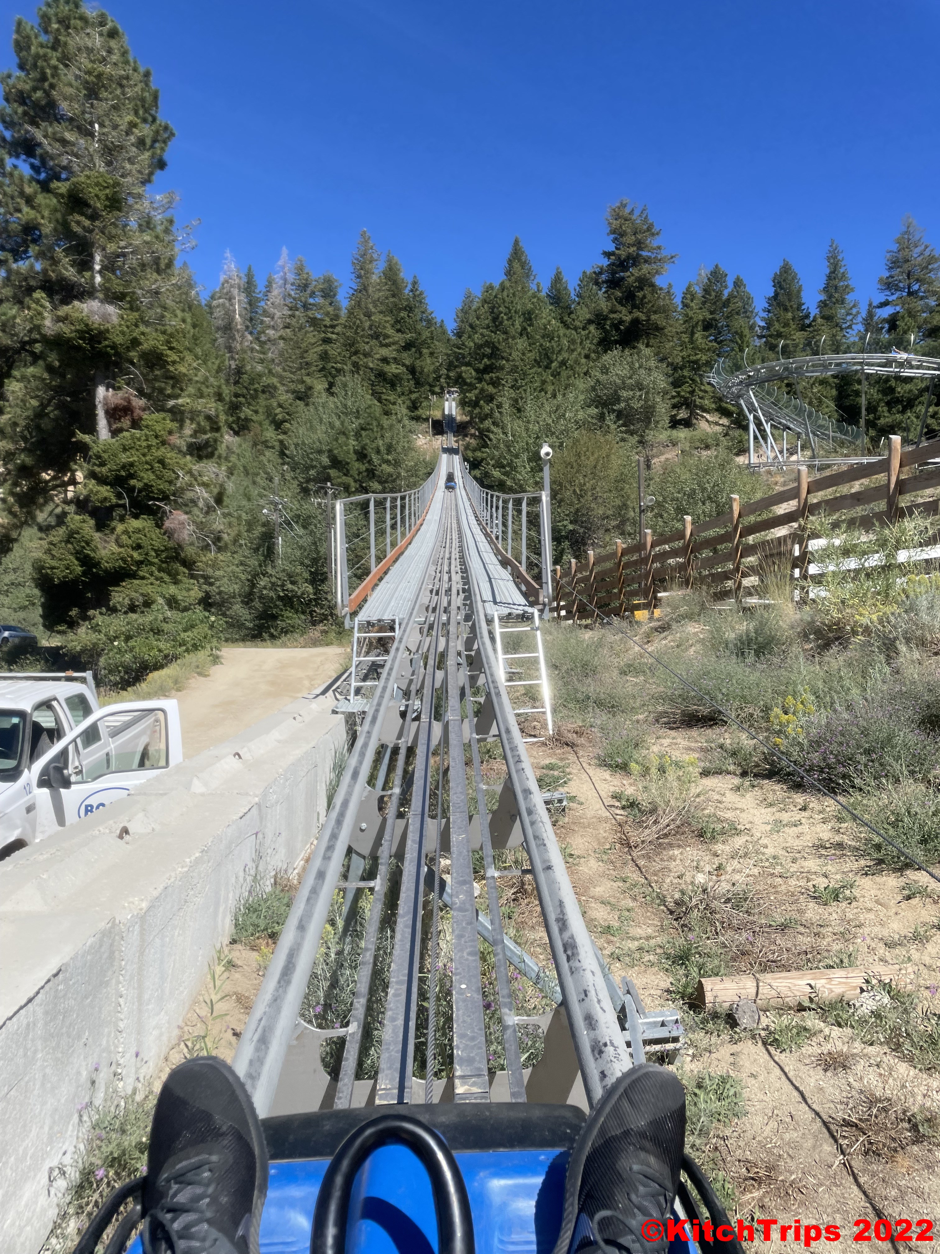 Similarly to the alpine slides back home, you go up the hill on a conveyor and are released from it at the top for a 0.9mi/1.44km run back down to the base, going around big sweeping corners, over little peaks and through some pretty fun chicanes as well. All at somewhere approaching 35mi/56km if you don’t use the brakes, which I didn’t after the first time. It’s a lot of fun hurtling through the trees and down the mountain.
