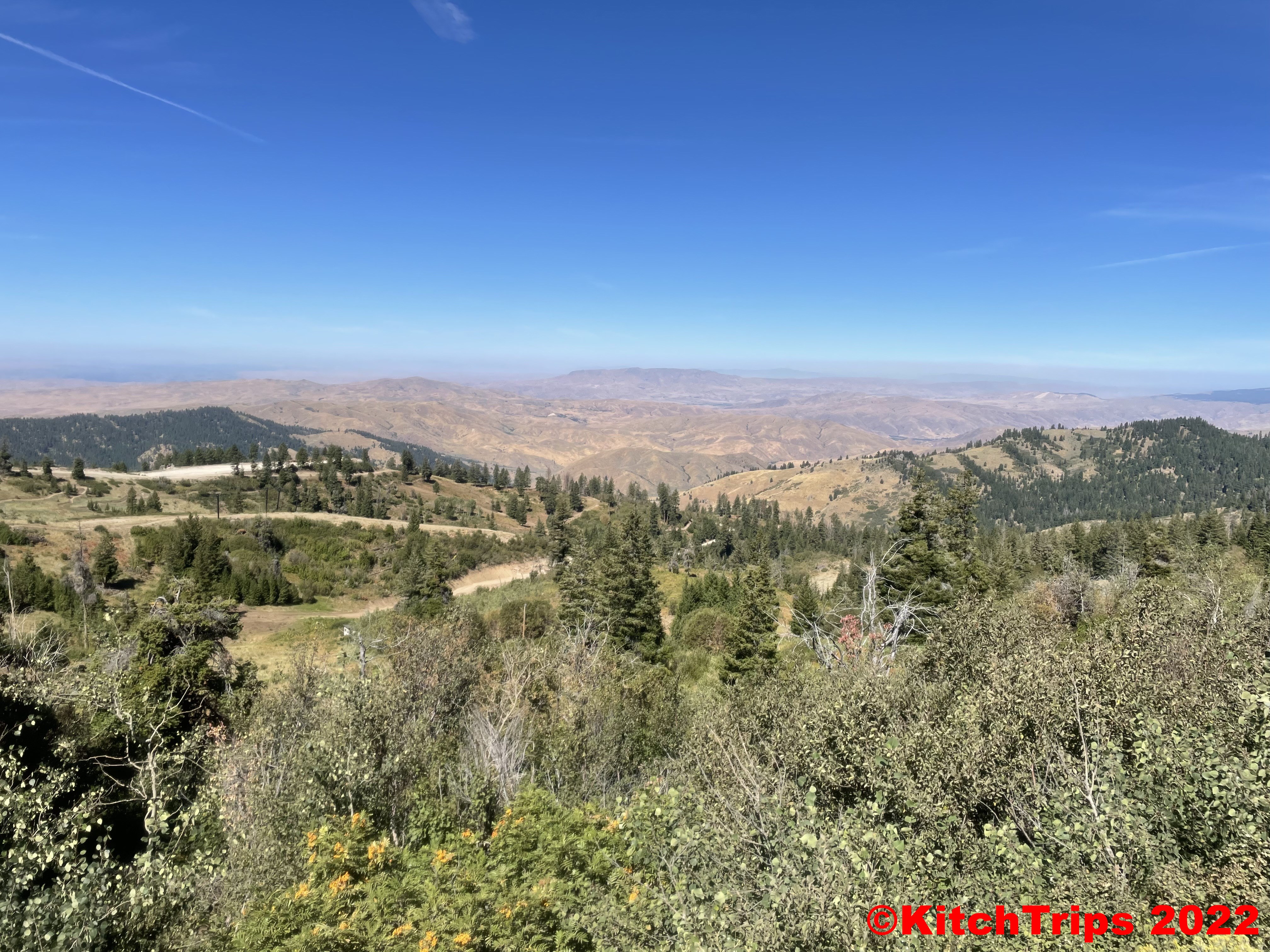 Up to Bogus Basin today, a ski resort that is only about thirteen steep and winding miles from downtown Boise, passing a lot of mountain bike and hiking trailheads along the way. The road takes you through the foothills and up into the forest, ending at the skin resort that, like Perisher and Thredbo back home, has discovered a very nice income stream from mountain biking. It was significantly cooler up there, and a perfectly sunny day.