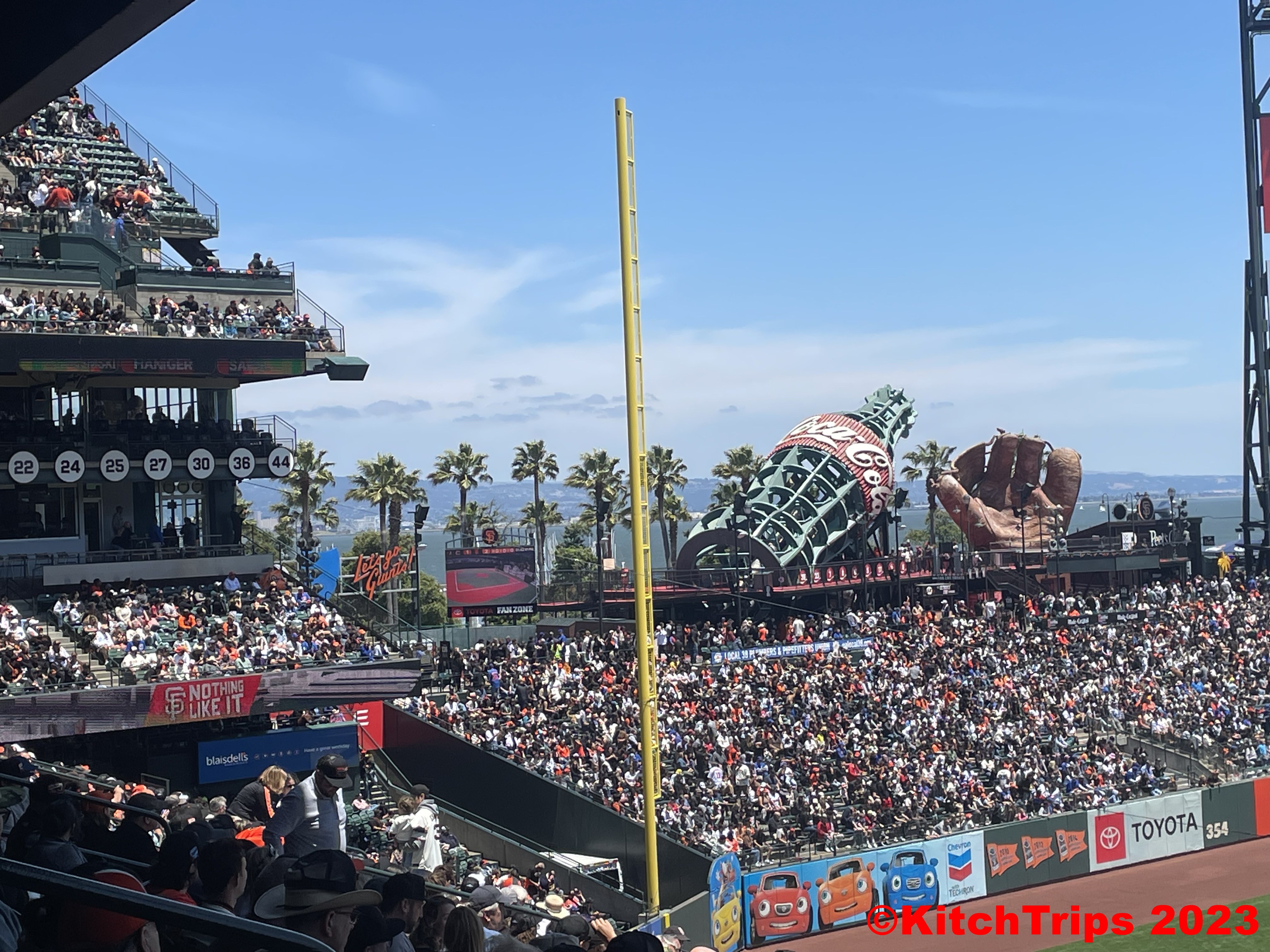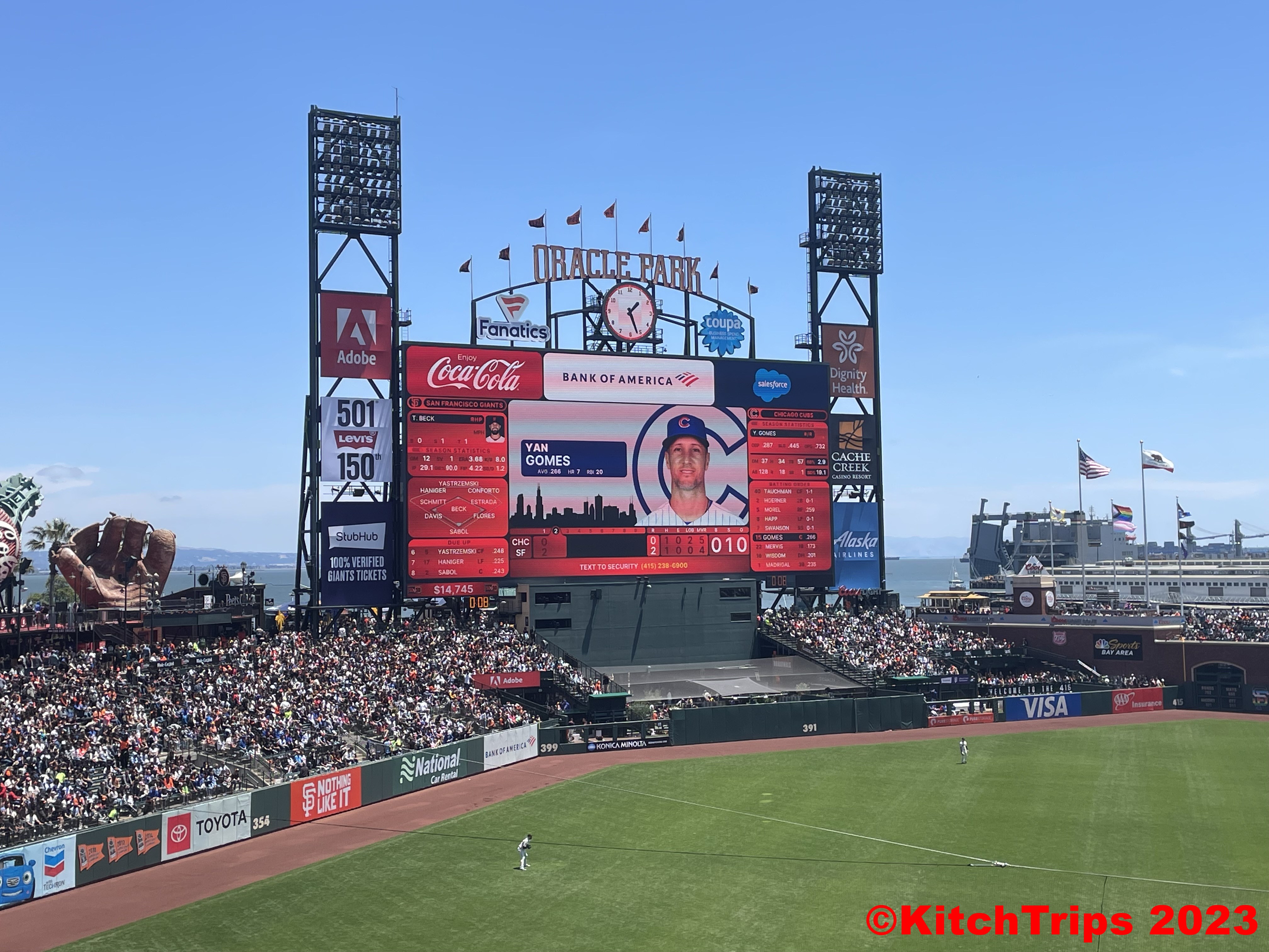 Oracle sits right on the waterfront, and is one of the parks on my MLB Bucket List. Cool to tick it off that list, and even cooler to see the Giants win 13-3, including a Joc Pederson home run into right field. Actually, it went out of the stadium and into McCovey Cove, where people in kayaks linger, hoping to get a ball. It was the one hundred and first time someone has hit a homer into McCovey Cove, and the stadium was opened more than twenty years ago. So, a fairly rare event that is kind of legendary in baseball, and we got to see it first go.