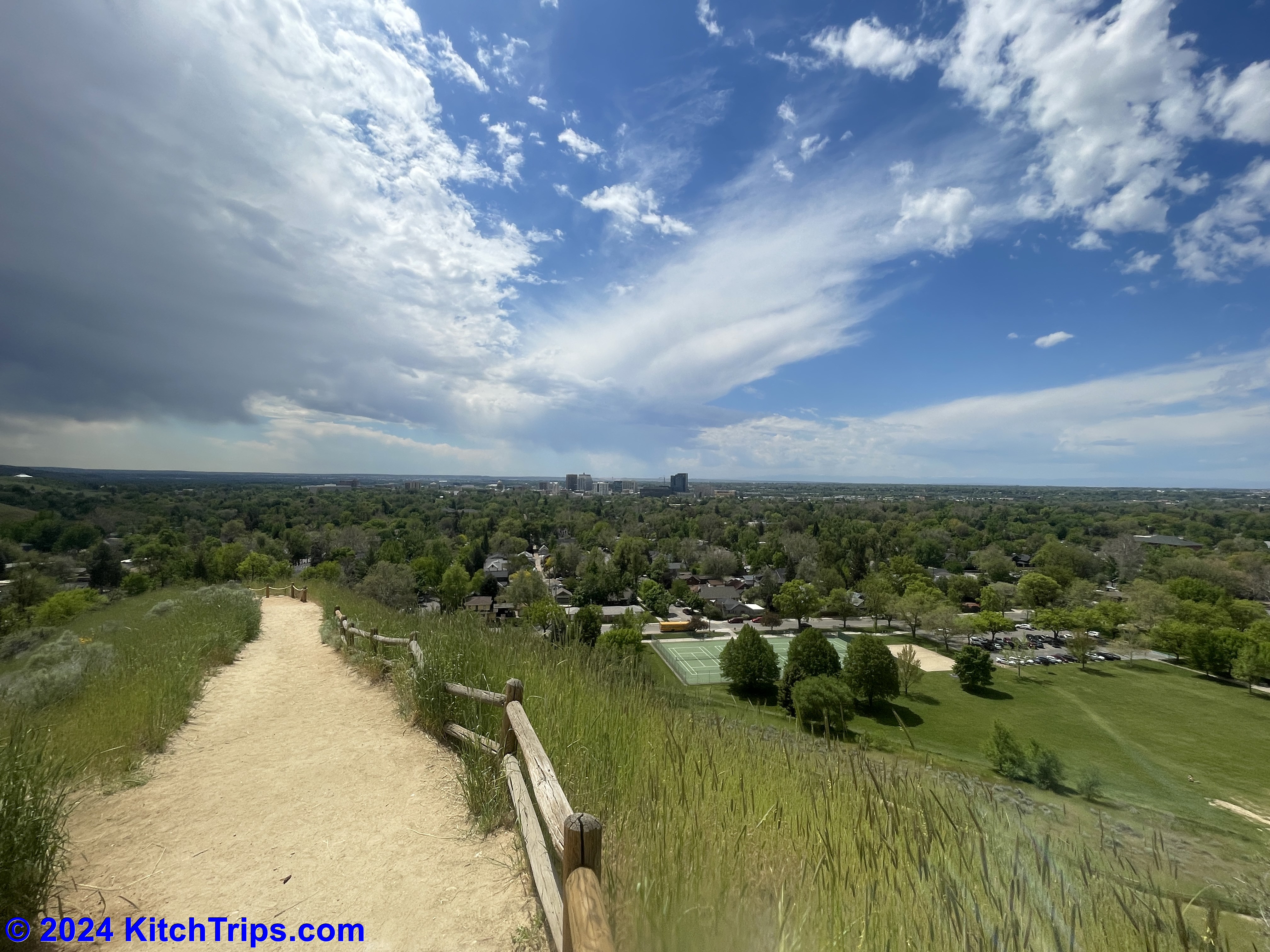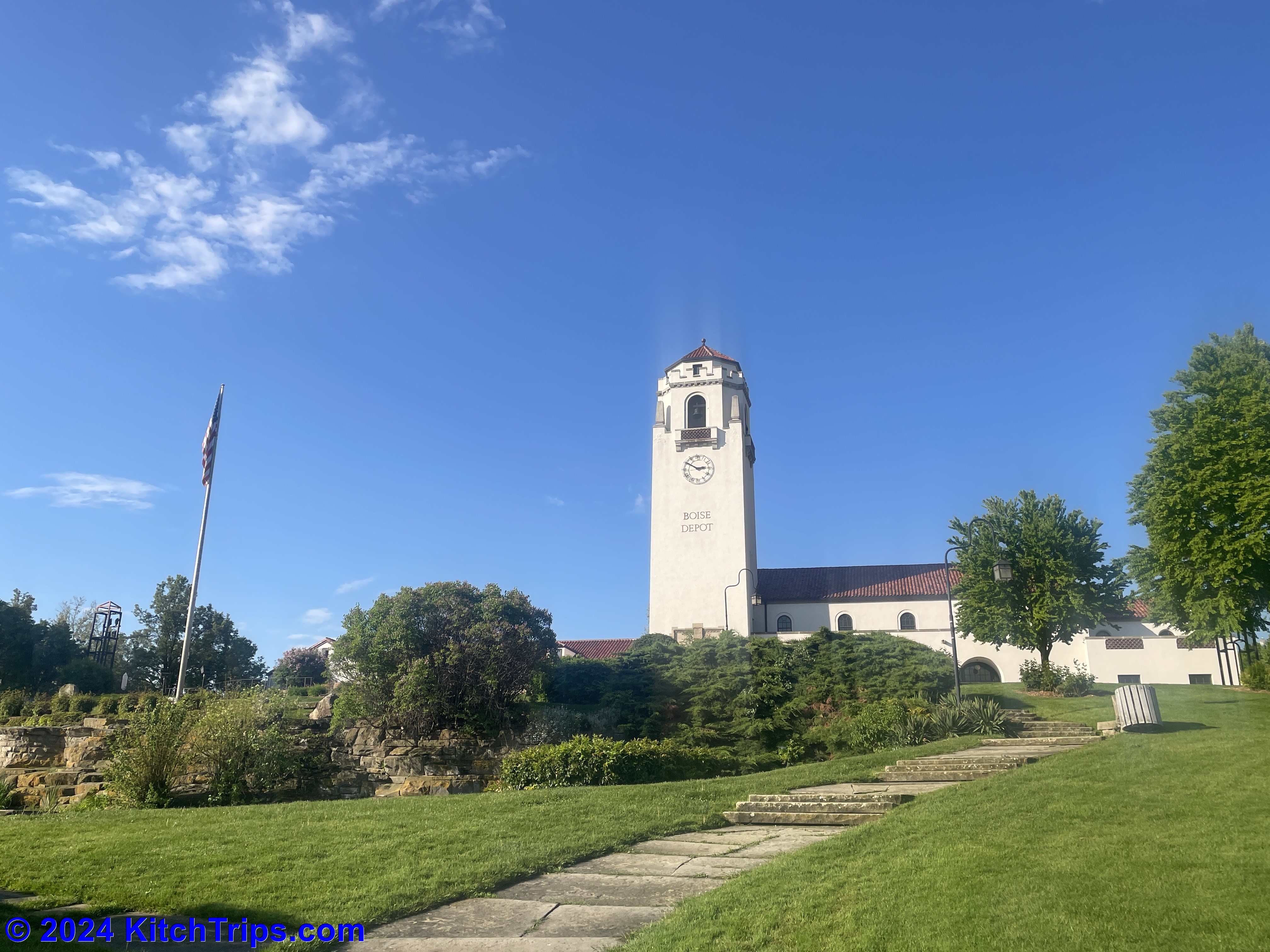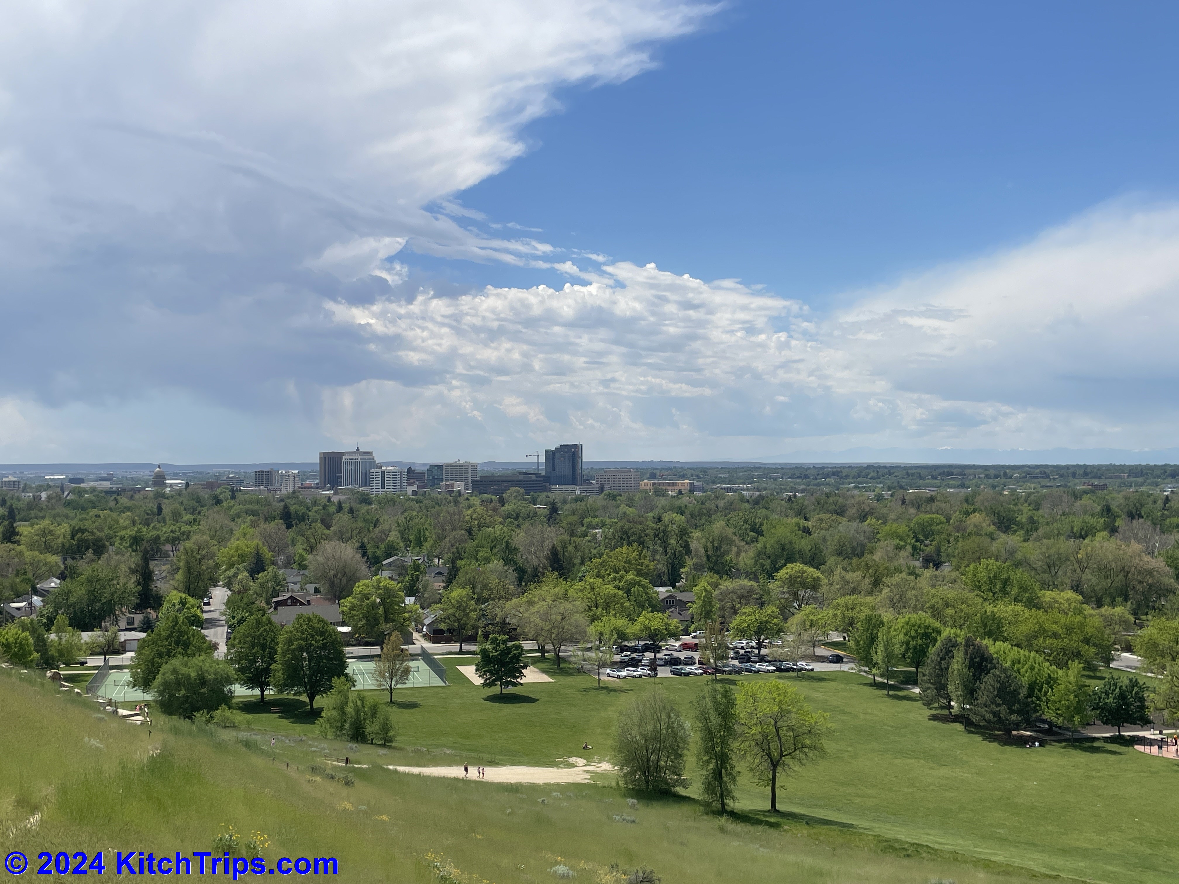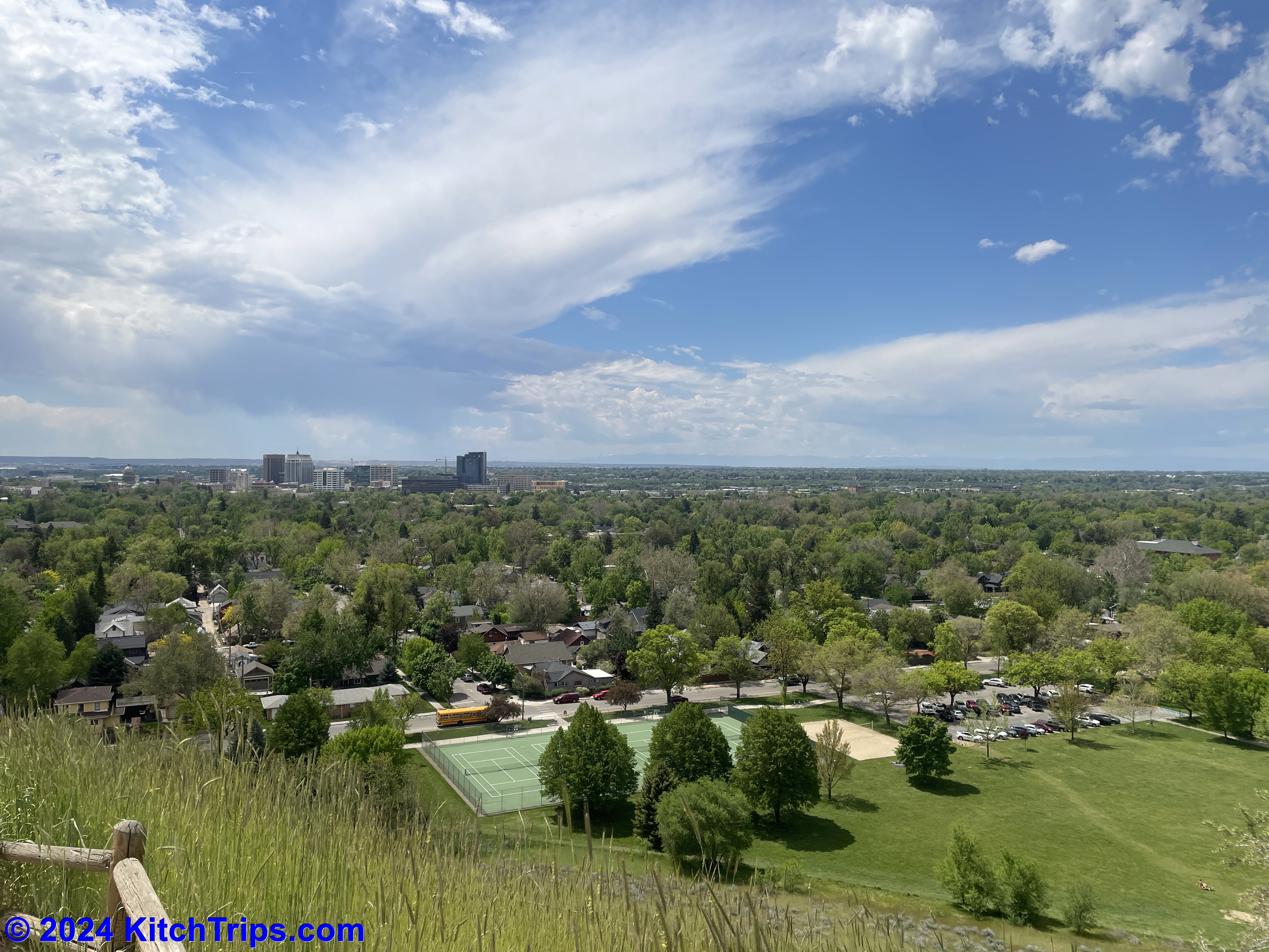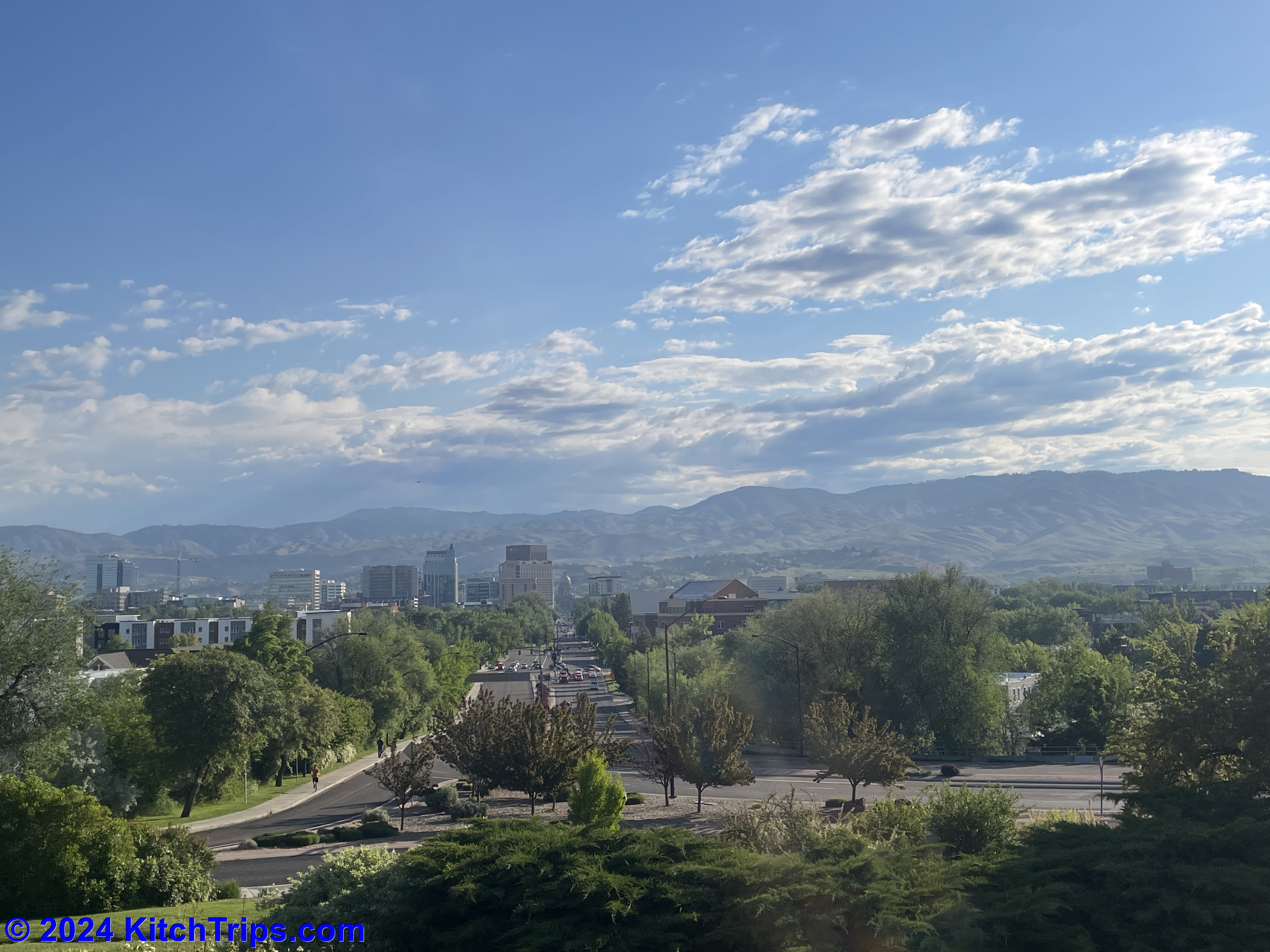 That was about 8:15am, and by that point there was very little evidence – other than a stray puddle here or there – that it had rained. The sun was out, and the clouds were clearing quickly. It was a beautiful Monday morning…if a little warm for running. I ended up putting in about 7km around Albertsons Stadium, the Boise State University campus and up to the Boise Depot, where the views this morning were stunning.