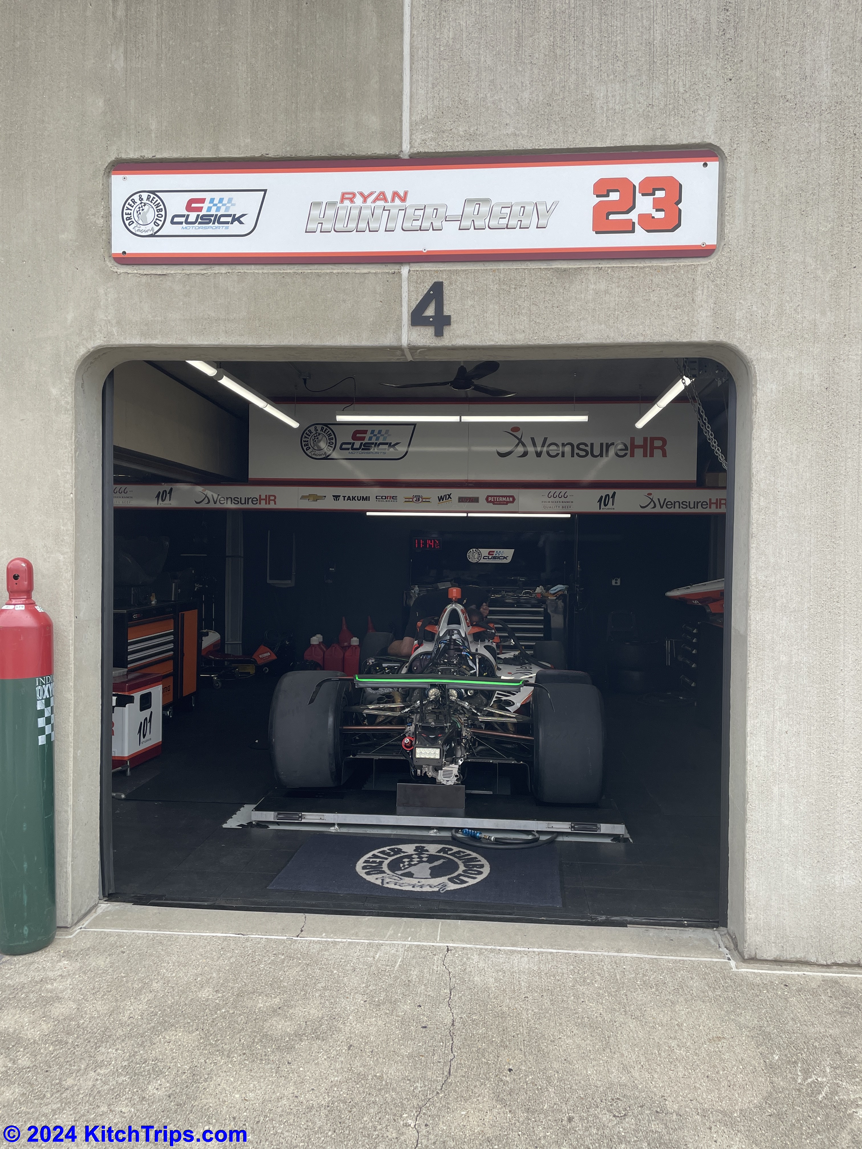 Ate brunch at a cafe on Main Street in Speedway, Indiana, just a stone’s throw from the track. Opposite to the garages, Main Street was heaving with people, and the atmosphere was fantastic. The restaurants and bars must love race weekends. Shout-out to the very old guy in the Dodge Caravan (a van commonly used by families) people mover playing Motley Crue’s “Kickstart My Heart” with heavy bass as he drove up and down Main Street. The things you see…