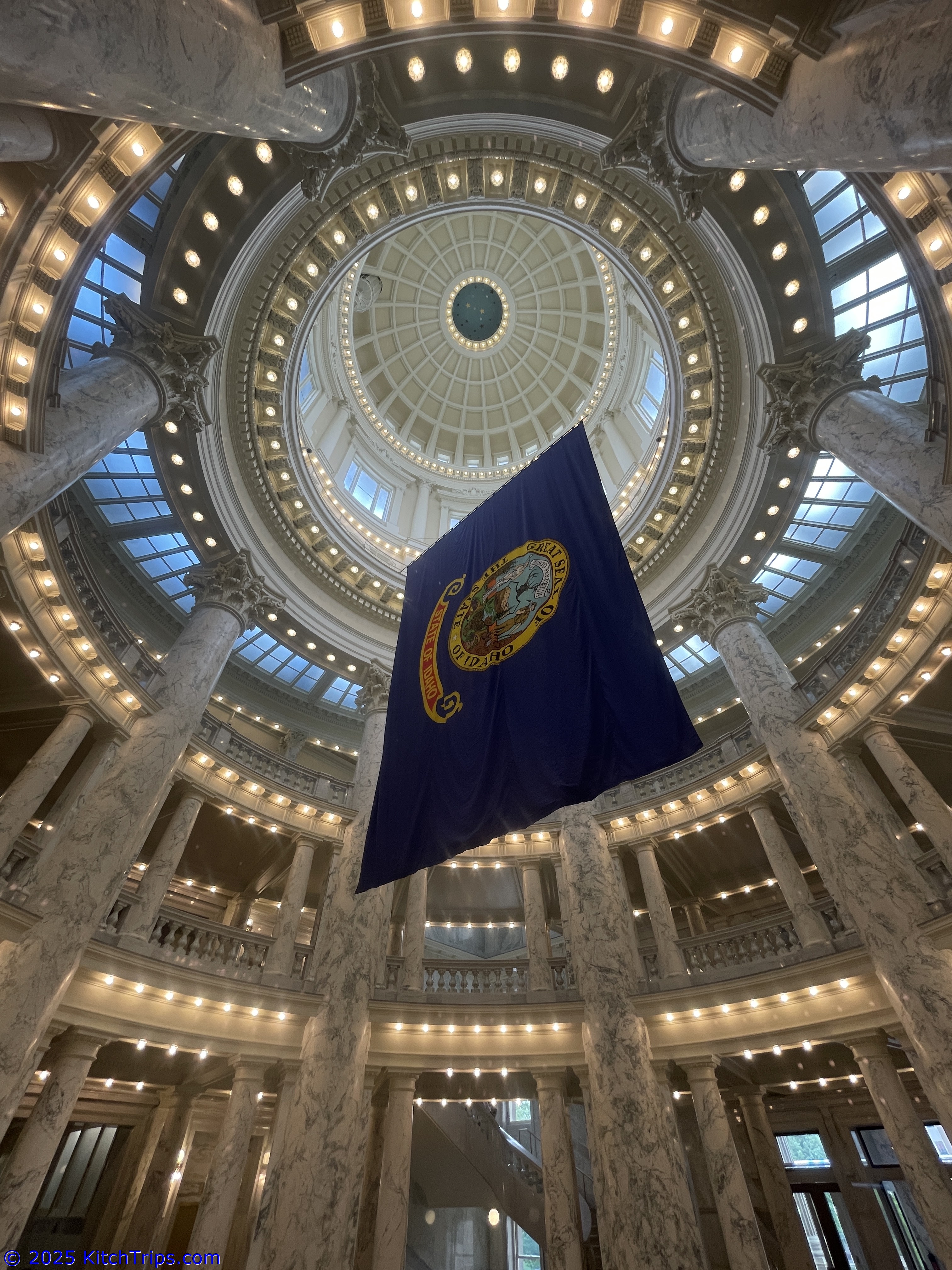 These grand State Capitol buildings are one thing that America does really, really well. Unfortunately, we had to wait a little while to get the panoramic photos we wanted because a tour bus had parked – quite literally – right in front of the Capitol for a while. Good luck at the bad timing awards…